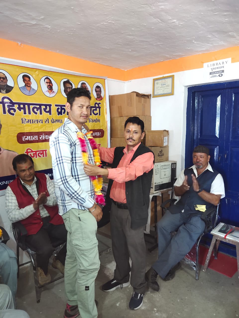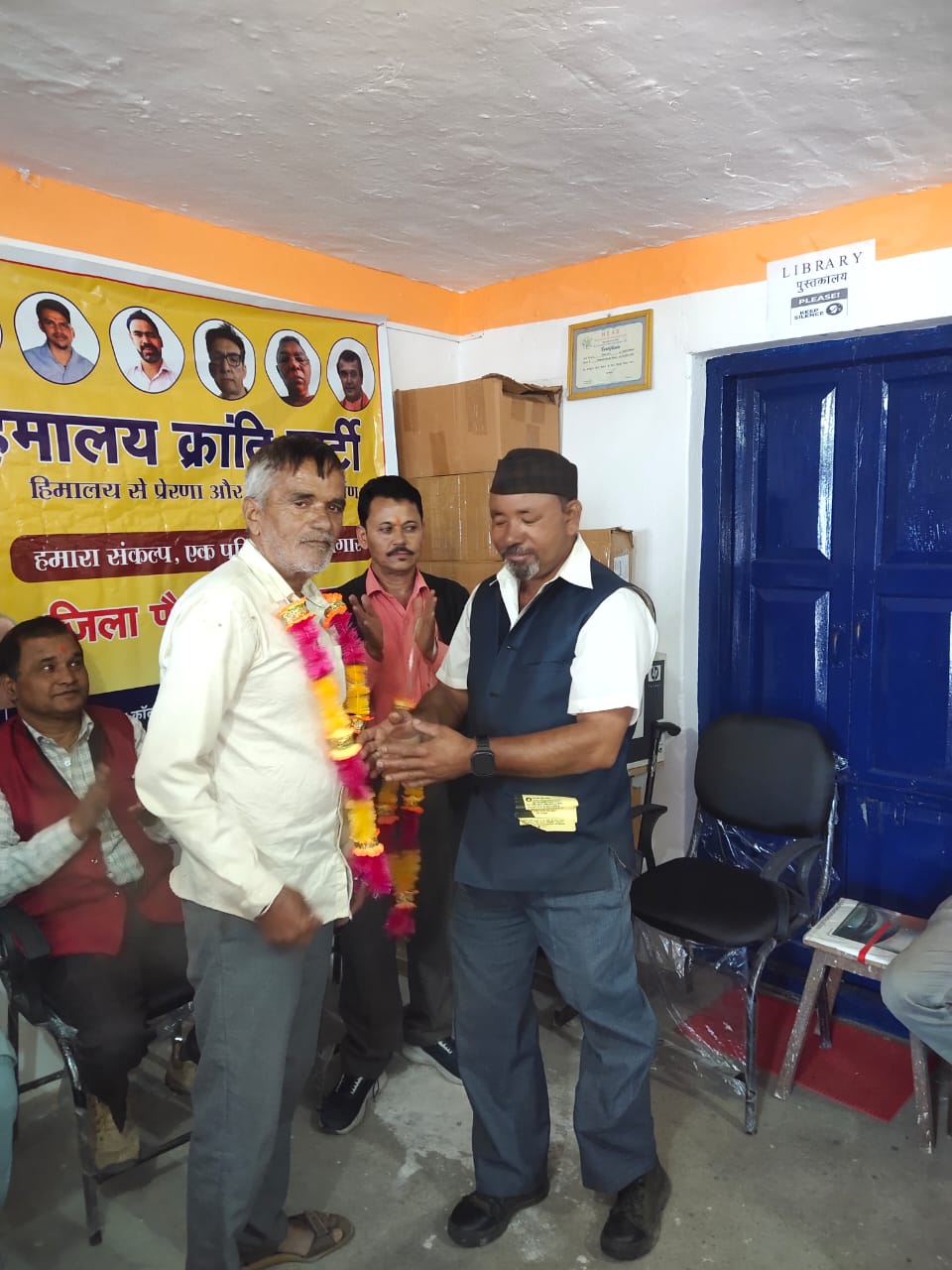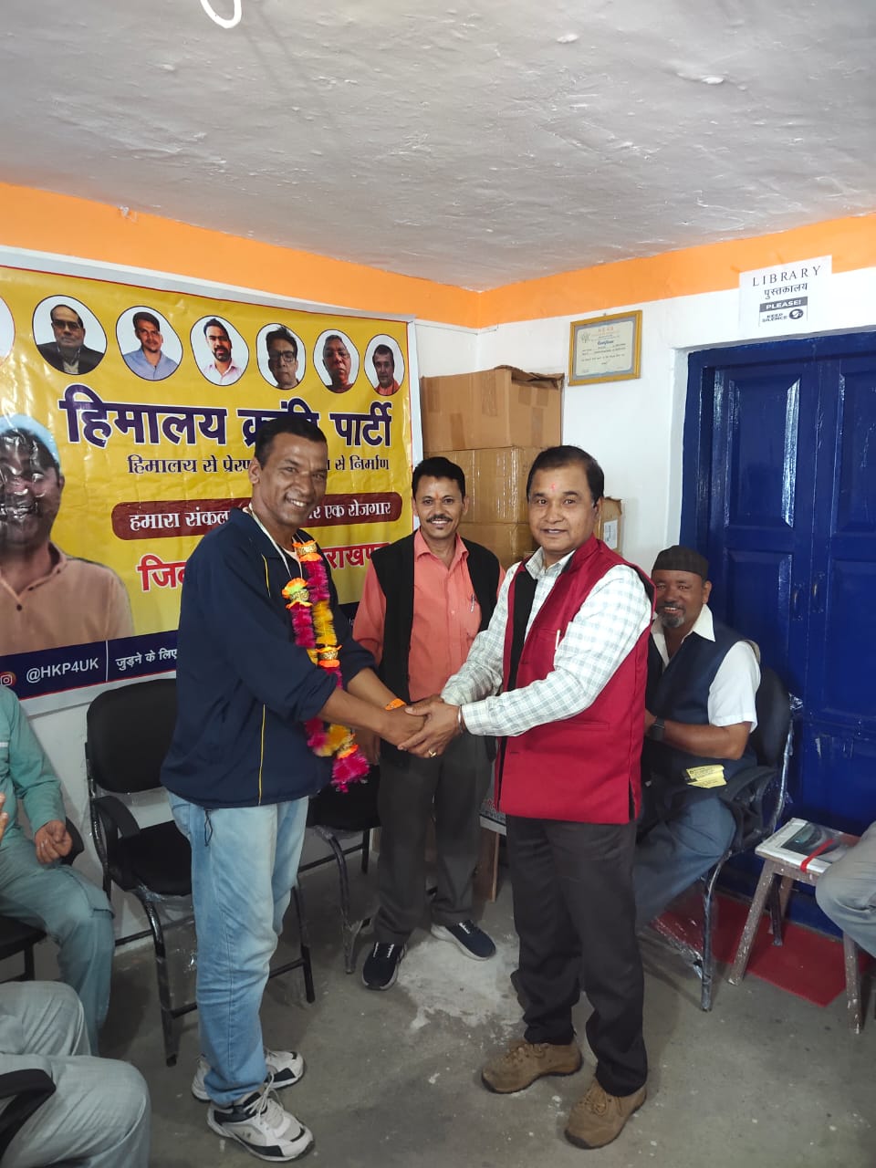 इससे पूर्व जिला कार्यालय पहुंचने पर प्रदेश महासचिव दिनेश सिंह बिष्ट ने श्री जुयाल एवं उनके समर्थकों का माल्यार्पण कर स्वागत किया। और कहा कि ऐसे बहुआयामी व्यक्तिव्त के धनी व्यक्ति के पार्टी में जुड़ने से उत्तराखंड जैसे सैनिक बाहुल्य क्षेत्र में निश्चित रूप से सैनिकों , पूर्व सैनिकों और आम जनमानस में हिमालय क्रांति पार्टी के प्रति रुझान बढ़ेगा।