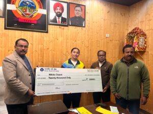 विश्वविद्यालय के कुलपति प्रो सतपाल सिंह बिष्ट ने पदक प्राप्त कर विश्व विद्यालय का नाम रोशन करने वाली दोनों महिला बॉक्सरों निकिता चंद को बीस हजार और कोमल मेहता को चौदह हजार रुपये चेक देकर सम्मानित किया तथा उन्हे खेलो भ विश्वविद्यालय खेल 2025 में प्रतिभाग करने की शुभकामनाएं दी। इस अवसर पर वित्त अधिकारी श्री अमित कुमार त्रिपाठी, विश्वविद्यालय क्रीड़ा प्रभारी लियाकत अली उपस्थित रहे।