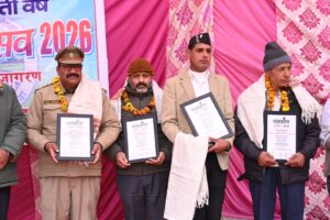 , डाक्टर विजयकांत पुरोहित निदेशक /विभागाध्यक्ष हैपर्क हेमंन्ती नंदन बहुगुणा केंद्रीय विश्वविद्यालय श्रीनगर गढ़वाल।, बै॑जीलाल शाह वन क्षेत्राधिकारी पोखरी रेंज नागनाथ अलकनंदा भूमि संरक्षण वनप्रभाग गोपेश्वर जिला चमोली को समलौण सम्मान से सम्मानित किये गये।